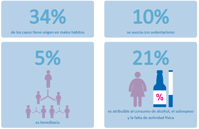 Como vemos en la infografía de la revista semana esto son los porcentajes que pueda ocasionar el cáncer de seno, como estábamos hablando anteriormente de tener una mejor estilo de vida, podrás mejor, la calidad y prevenir la enfermedad.